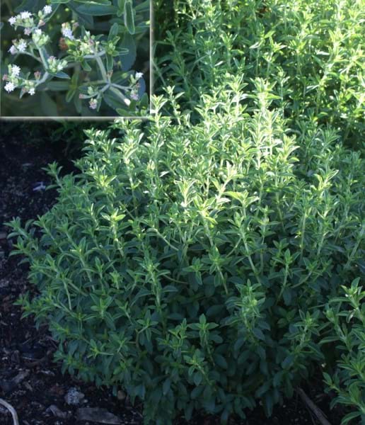 Plants often come in more than one size. Please see the dropdown box below for available sizesExotic small shrub that has white flowers which occur Sep-Nov It has green foliage and prefers a part-full sun position in a well drained soil Height: 0.5 to 0.8 Width: 0.4 to 0.7 Bulk Discount If you buy 3-6 plants there will be a $0.50 discount per plant"If you buy 7+ plants there will be a $1.00 discount per plantPlants on Special are excluded